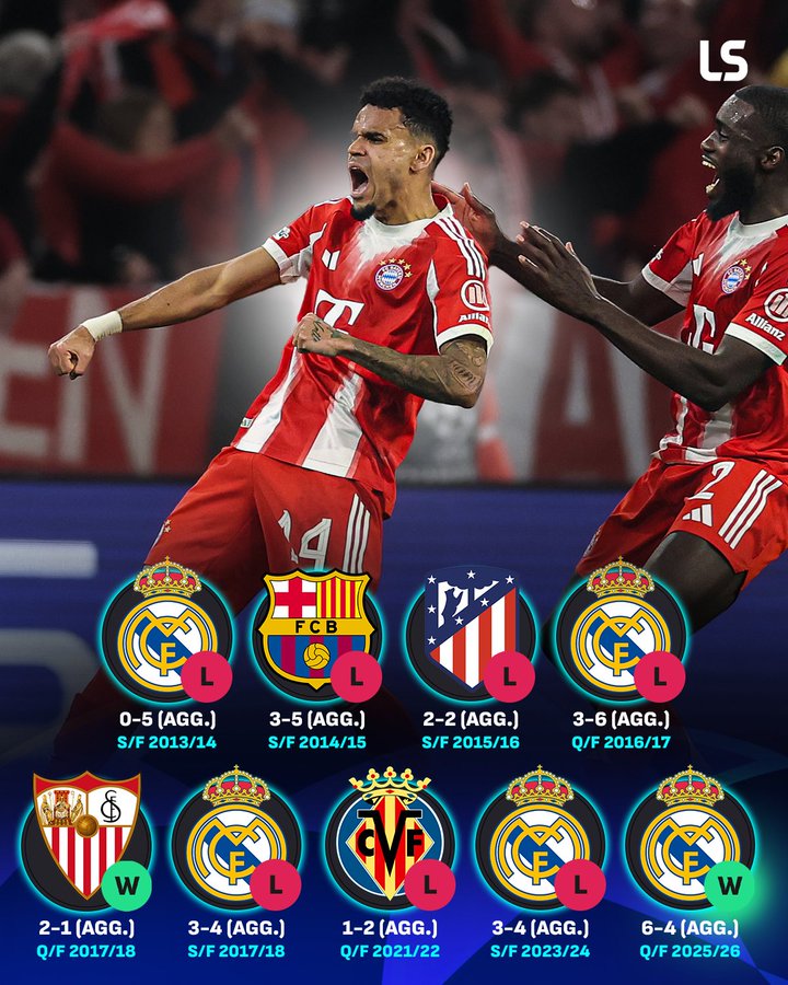 当时间来到了2026,当拜仁再一次相遇西甲球队,当这一次的对手甚至还是老朋友的皇马之时,拜仁终于改变了以往球队“恐西”(恐惧西班牙球队)的情形,客场2-1和主场4-3的双杀,让拜仁带着6-4的领先进入到了半决赛的较量之中!